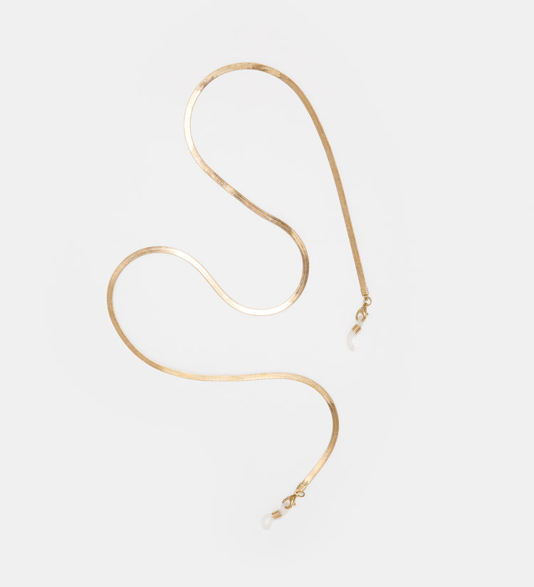 Virginia er vores retro-inspirerede kæde i skinnende guld. Det strømlinede design gør den til det perfekte smykke både at bære med dine briller eller som halskæde. Hver kæde har en holdbar metalspænde i hver ende, som du kan fastgøre til ethvert tilbehør.